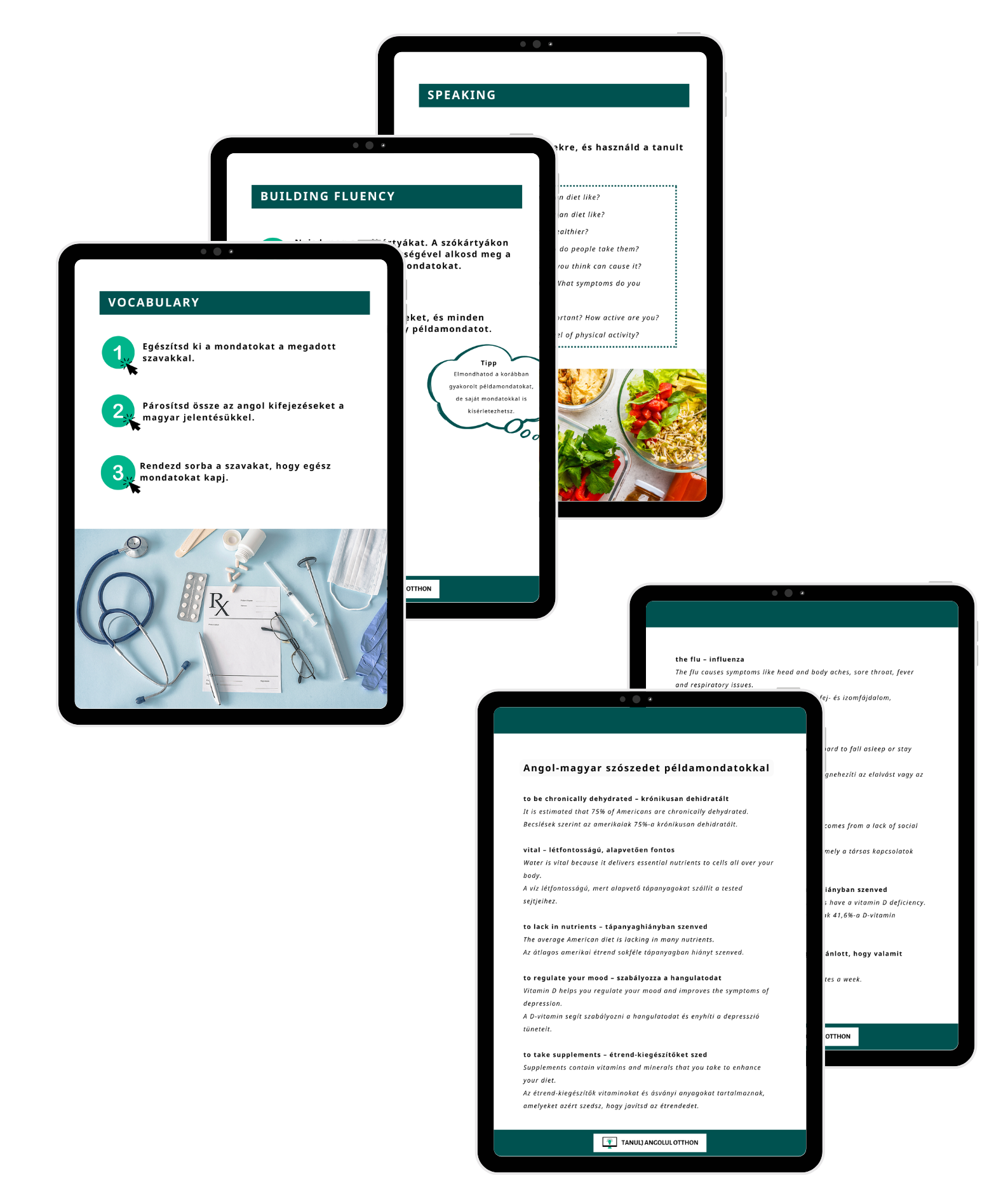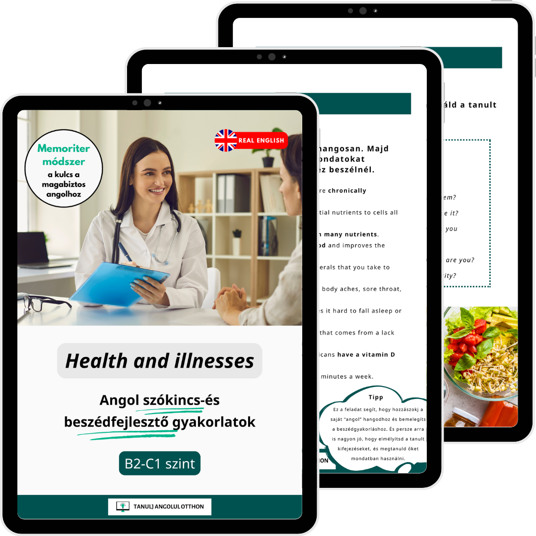 Egy ingyenes angol szókincs-és beszédfejlesztő munkafüzet az egészség témakörben, amellyel megtanulsz 10 hasznos hétköznapi kifejezést szóban használni.